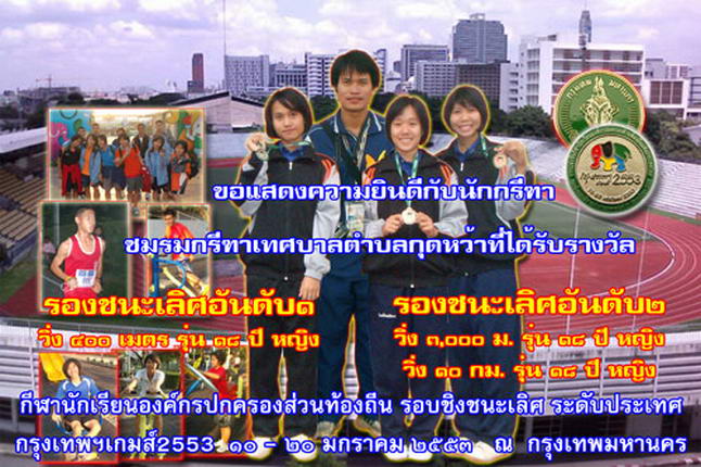 - วิ่ง 3000 เมตร 16 ปี ชาย ได้อันดับที่ 3 (ภาณุวัฒน์ พลหงษ์)
