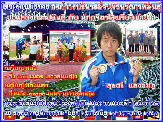 - วิ่งผลัด 4x400 เมตร รุ่นอายุ 19 ปี หญิง นางสาว สุธณี แสงชมภู ได้อันดับที่ 3